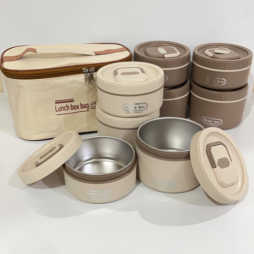 لانچ باکس داخل استیل کیف دار ۴ تایی گرد