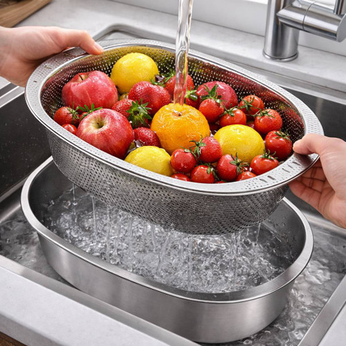 آبکش طرح بیضی رنگ نقره ای سیلور