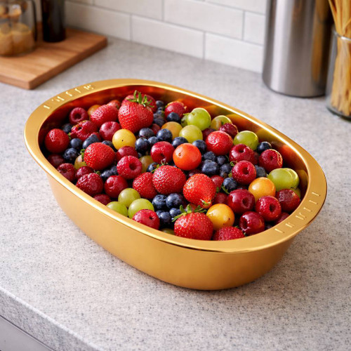لگن طرح بیضی رنگ طلایی