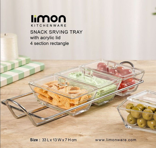 اردوخوری شیشه ای مستطیل ۴ خانه لیمون