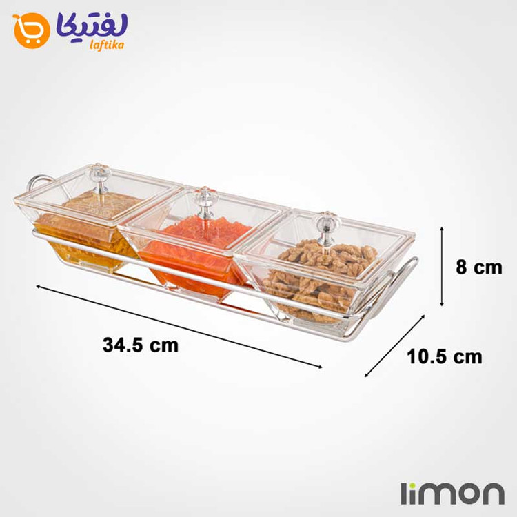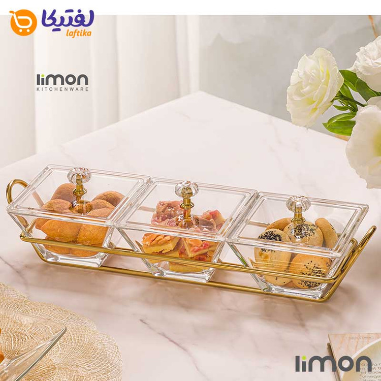 اردوخوری شیشه ای مربع ۳ خانه لیمون