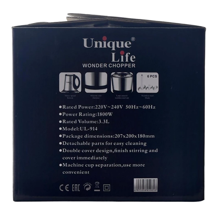 مشخصات جنس تیغه استیل ضد زنگ دستگاه آمادهسازی غذا خردکن امکانات تفکیک قطعات نحوه شستشو شستوشوی اقلام جانبی در ماشین ظرفشویی ظرفیت ظرف خردکن 3.3 لیتر تعداد تنظیمات سرعت 3 عدد توان 1800 وات طول سیم 1 متر دارای دو کاسه ی پیرکس و استیل مجزا شامل همزن تخم مرغ و کاردک
