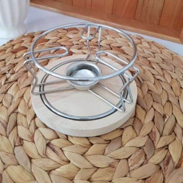 این محصول دارای شمعی کوچک است که برای گرم نگه داشتن قوری و کتری استفاده میشود