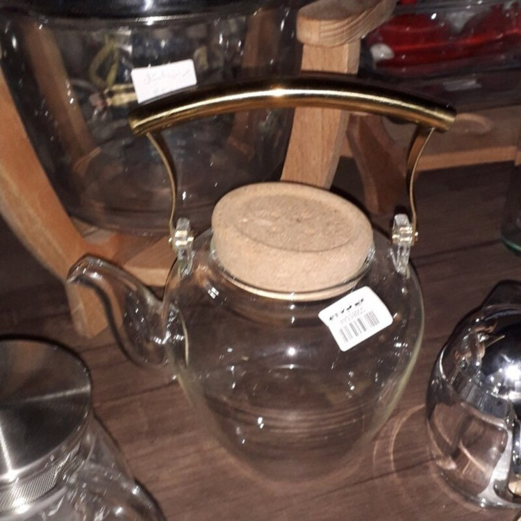 قوری پیرکس دسته طلایی درب چوبی دکمه ای مناسب تهیه و سرو چای و دمنوش و انواع نوشیدنی گرم و ...