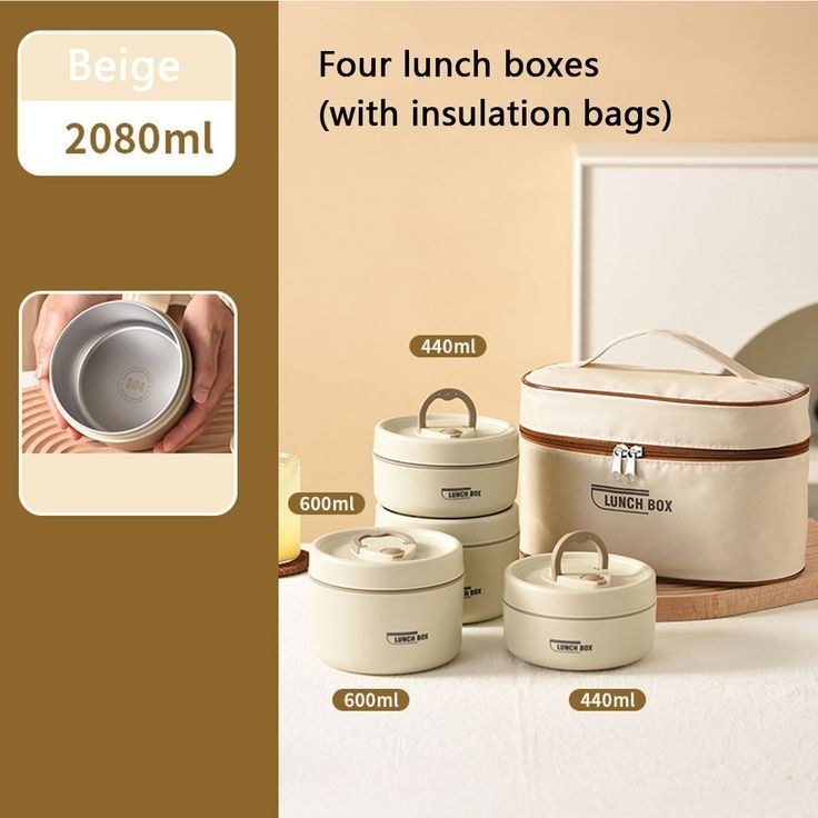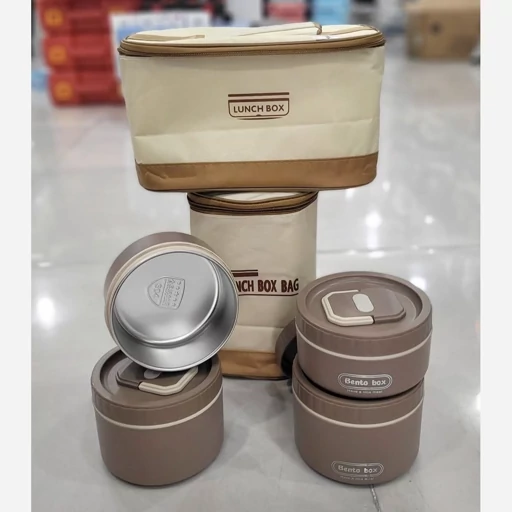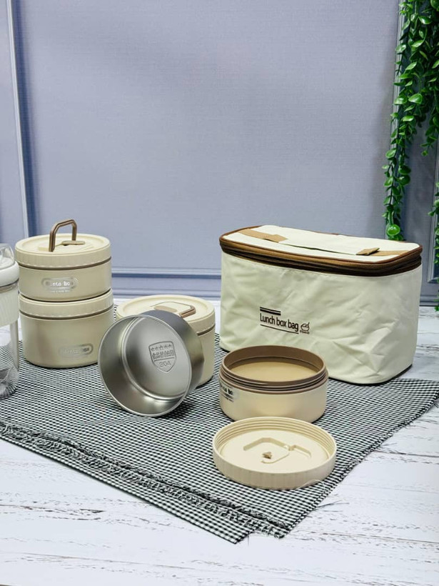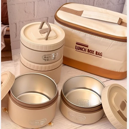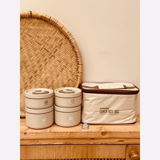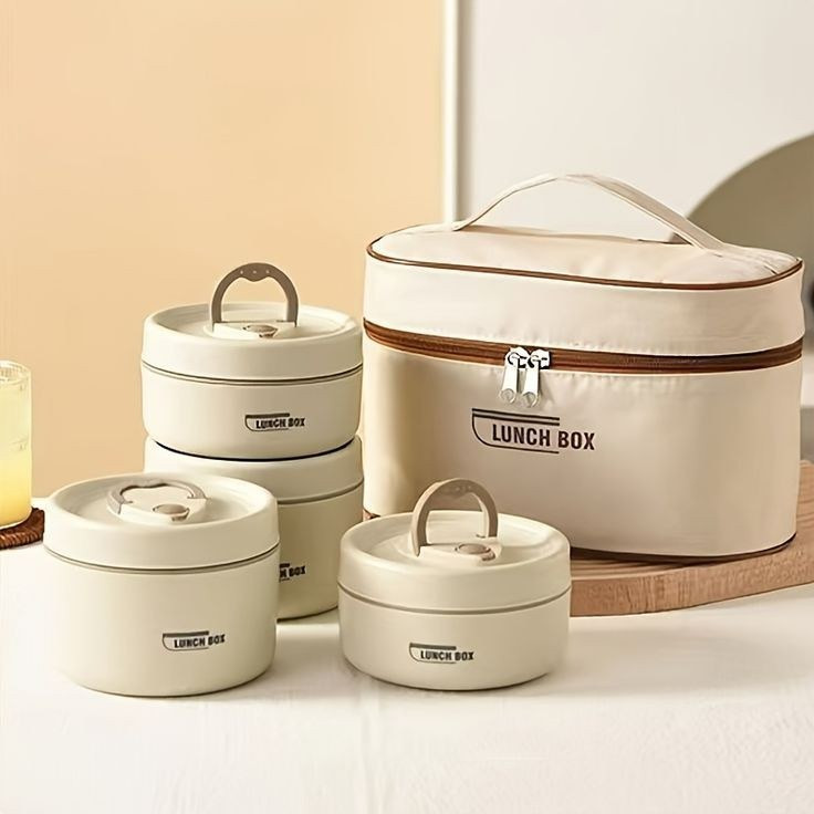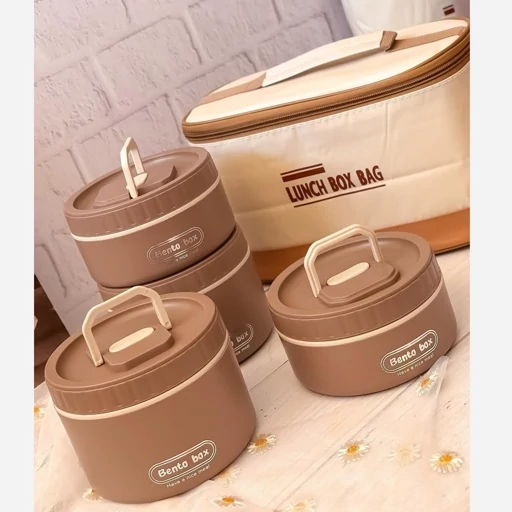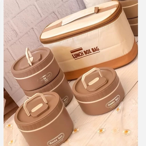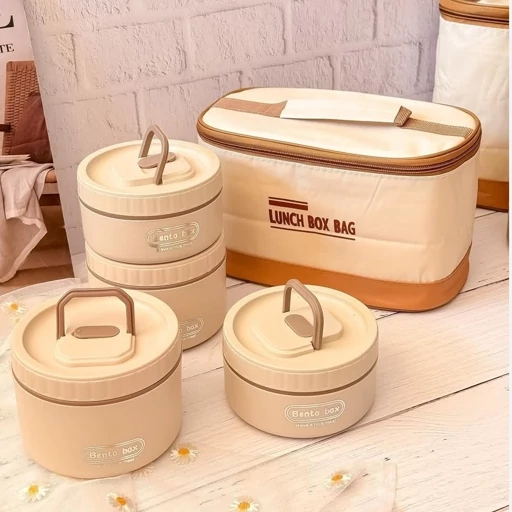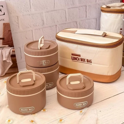 ظرف غذای ست بنتو کیف دار | پک 4 تایی گرد